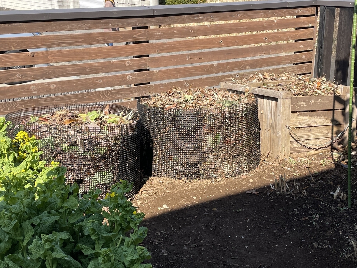 落ち葉や花後の植物、剪定後の枝葉などは年々増え、堆肥ボックスはいつも満タン。